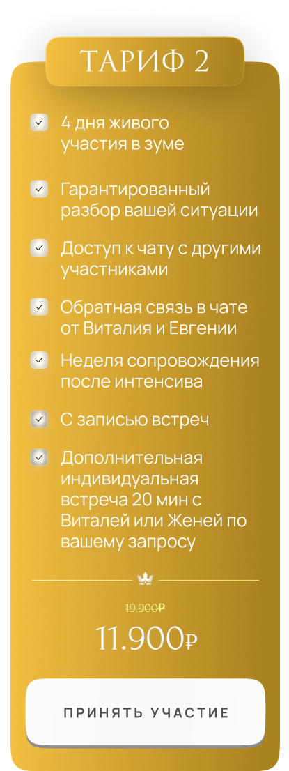 Вы получите поддержку в Телеграм-чате и домашние задания, а также возможность дополнительной индивидуальной консультации (в расширенном тарифе), чтобы закрепить результат.